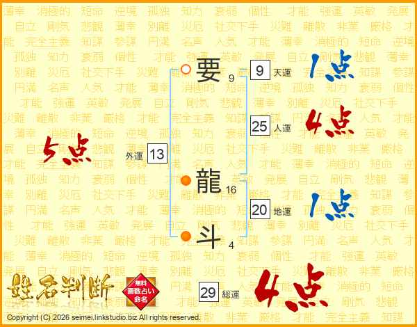 要龍斗さんの総運は29画の4点!