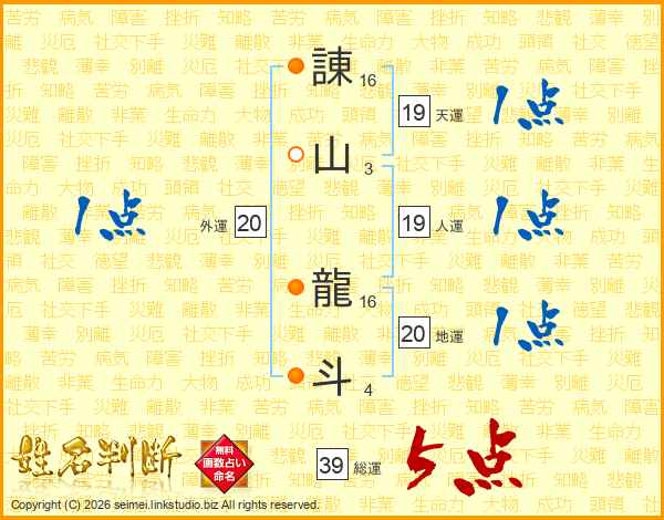 諌山龍斗さんの総運は39画の5点!