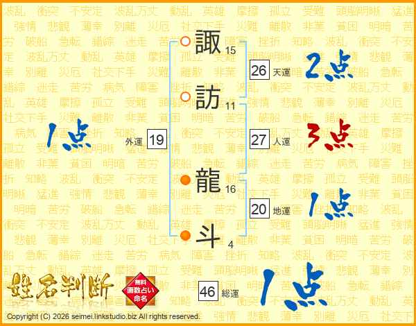 諏訪龍斗さんの天運は26画の2点!