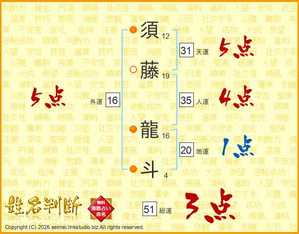 須(12画)藤(19画) 龍(16画)斗(4画)