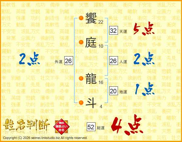 饗庭龍斗さんの総運は52画の4点!