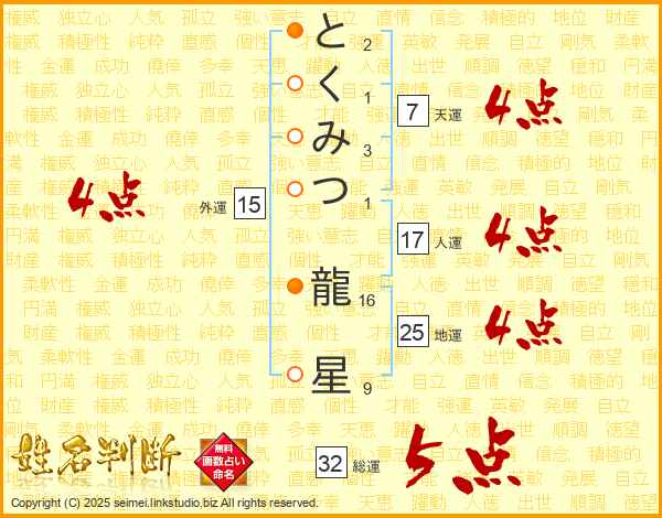 と(2画)く(1画)み(3画)つ(1画) 龍(16画)星(9画)
