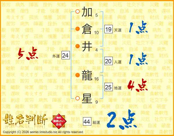 加(5画)倉(10画)井(4画) 龍(16画)星(9画)