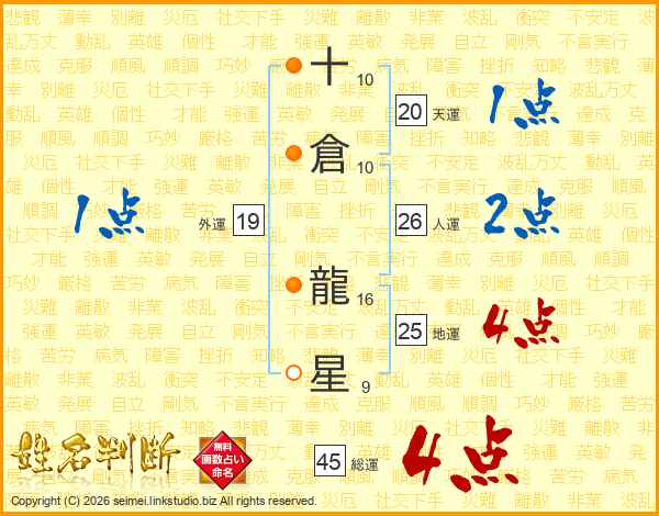 十倉龍星さんの総運は45画の4点!