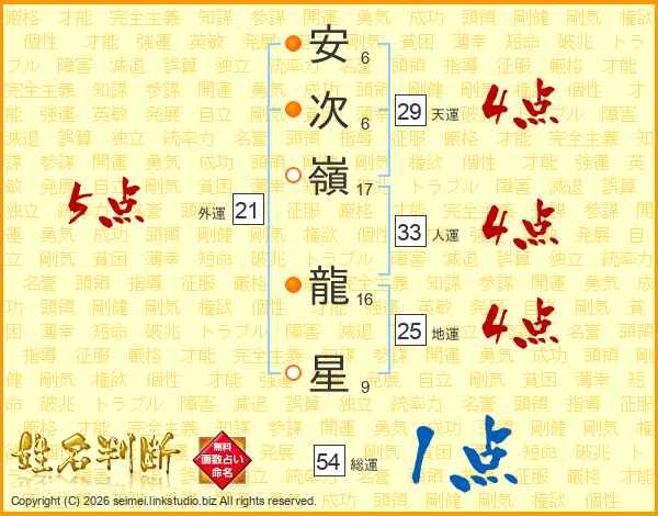 安次嶺龍星さんの外運は21画の5点!