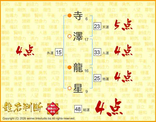 寺澤龍星さんの人運は33画の4点!