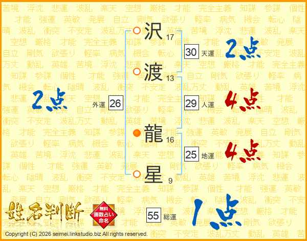沢(17画)渡(13画) 龍(16画)星(9画)