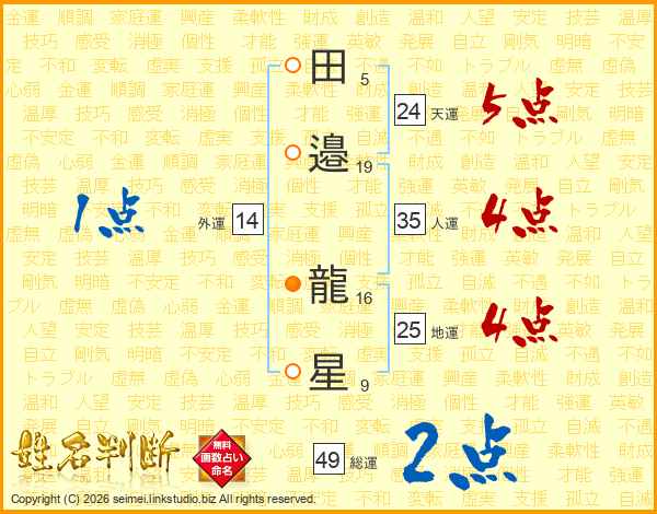 田邉龍星さんの地運は25画の4点!