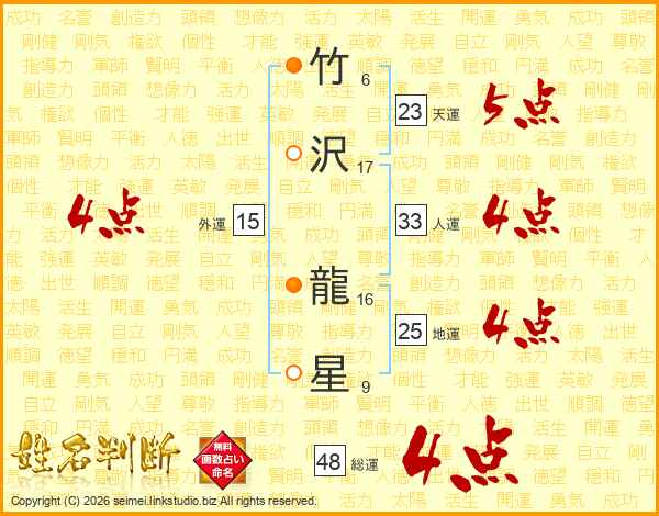 竹(6画)沢(17画) 龍(16画)星(9画)