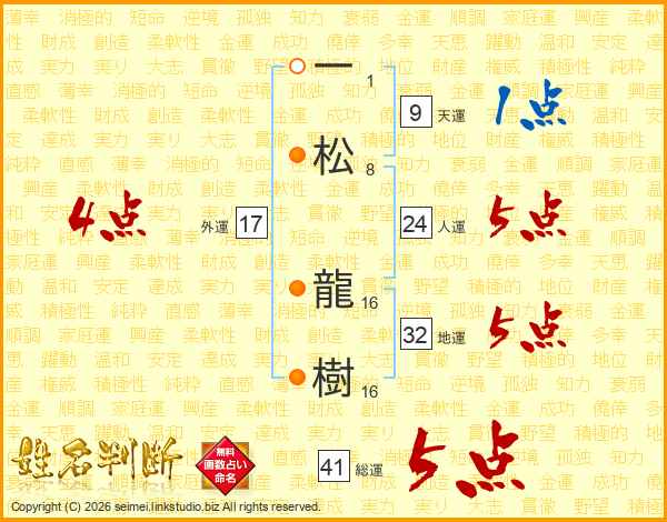 一松龍樹さんの総運は41画の5点!