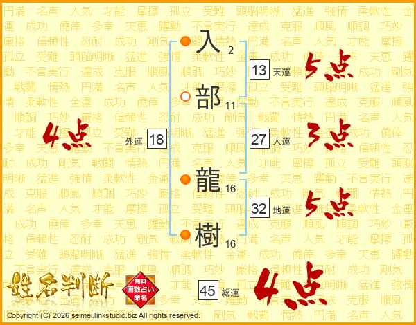 入部龍樹さんの総運は45画の4点!