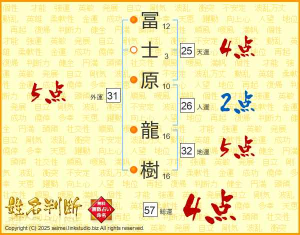 冨士原龍樹さんの天運は25画の4点!