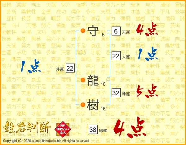 守龍樹さんの総運は38画の4点!