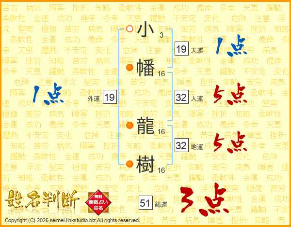 小幡龍樹さんの総運は51画の3点!