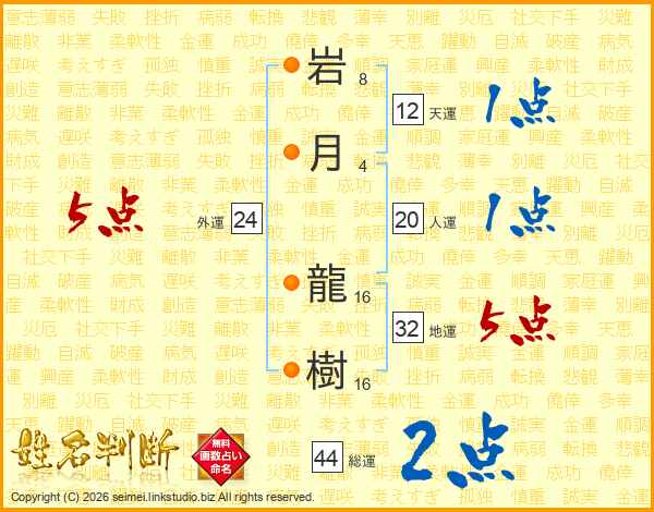 岩月龍樹さんの総運は44画の2点!