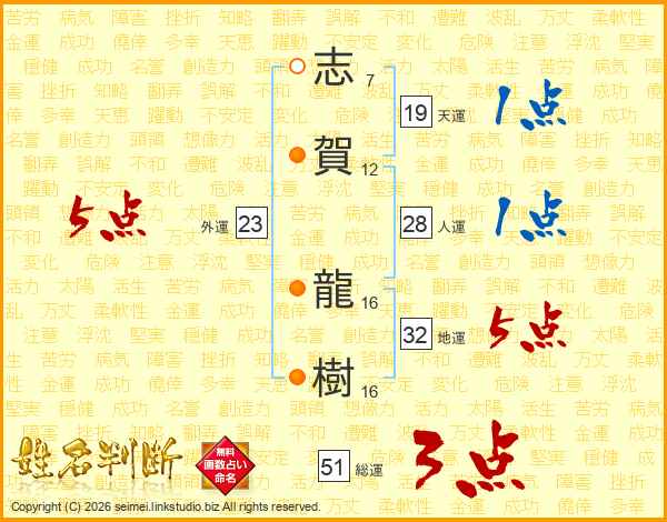 志賀龍樹さんの外運は23画の5点!