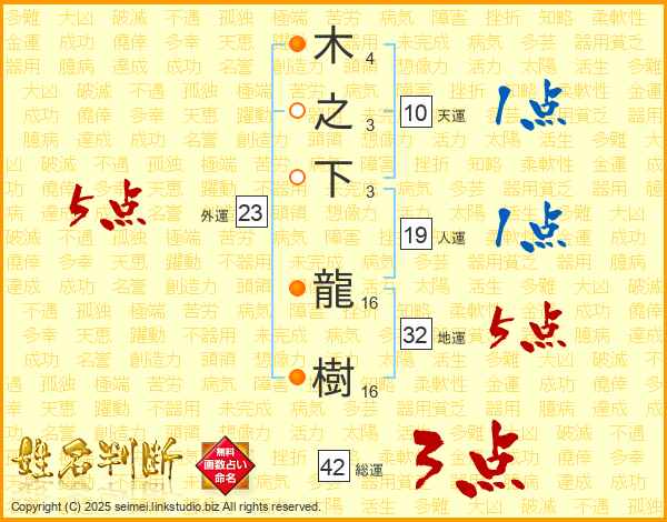 木(4画)之(3画)下(3画) 龍(16画)樹(16画)