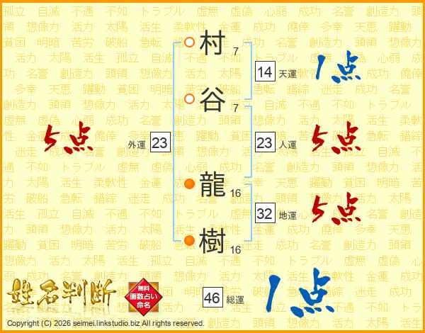 村谷龍樹さんの総運は46画の1点!