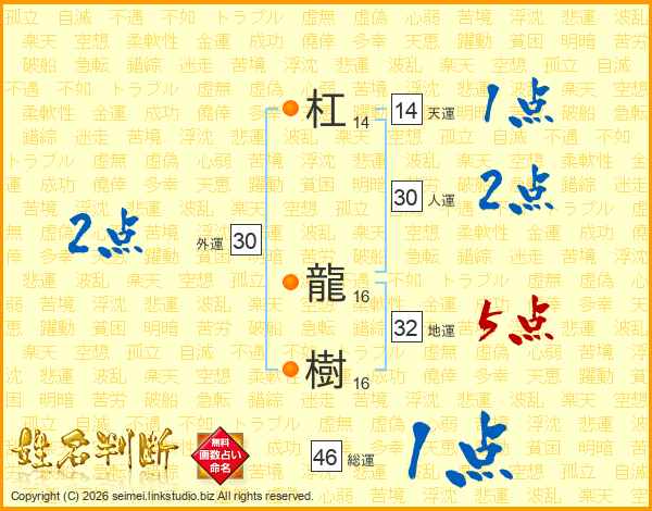 杠龍樹さんの総運は46画の1点!