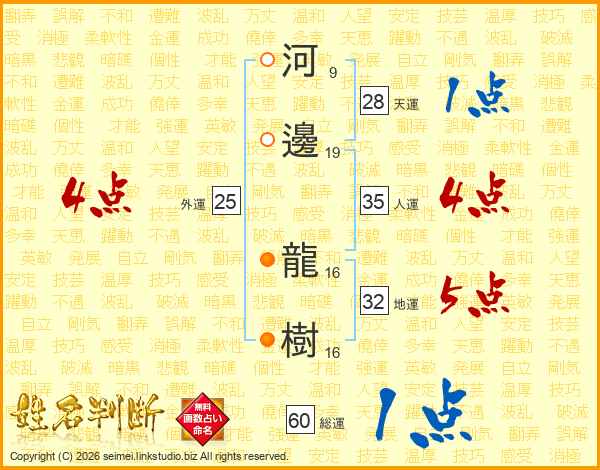 河(9画)邊(19画) 龍(16画)樹(16画)