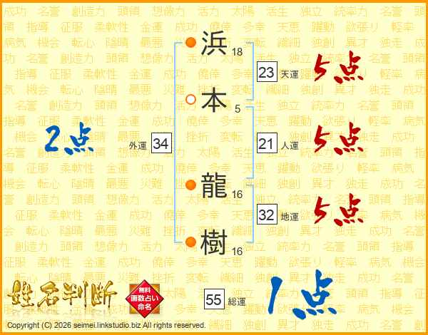 浜(18画)本(5画) 龍(16画)樹(16画)