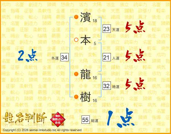 濱(18画)本(5画) 龍(16画)樹(16画)