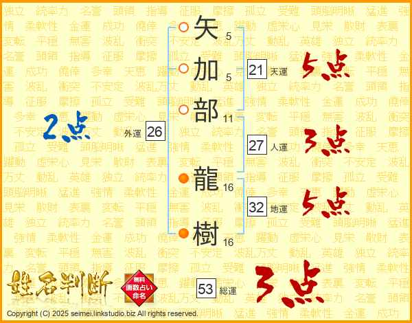 矢加部龍樹さんの総運は53画の3点!