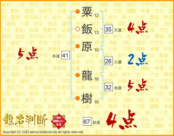 粟(12画)飯(13画)原(10画) 龍(16画)樹(16画)