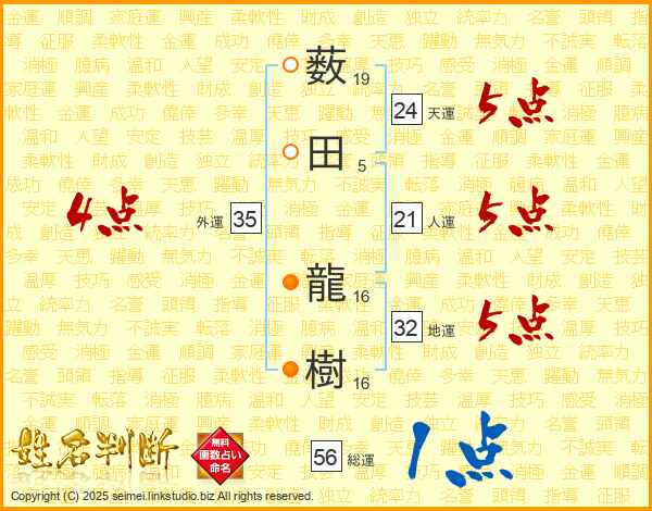 薮田龍樹さんの総運は56画の1点!