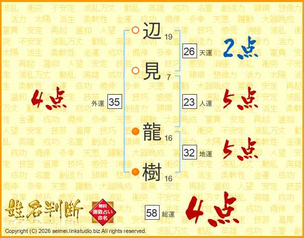 辺(19画)見(7画) 龍(16画)樹(16画)