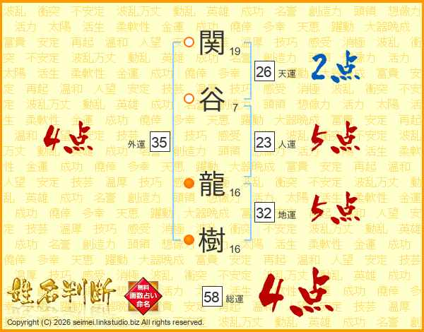 関谷龍樹さんの総運は58画の4点!