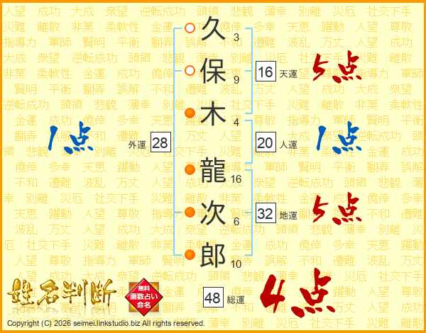 久(3画)保(9画)木(4画) 龍(16画)次(6画)郎(10画)