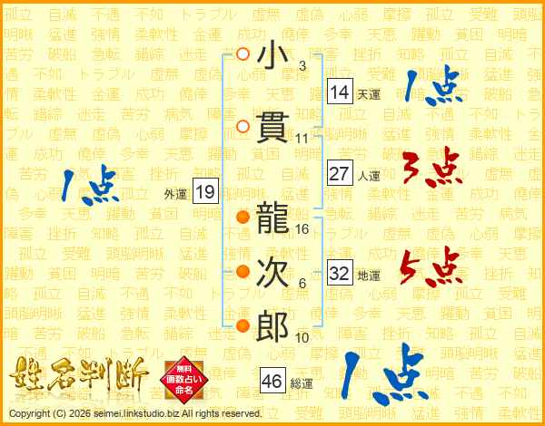 小貫龍次郎さんの総運は46画の1点!