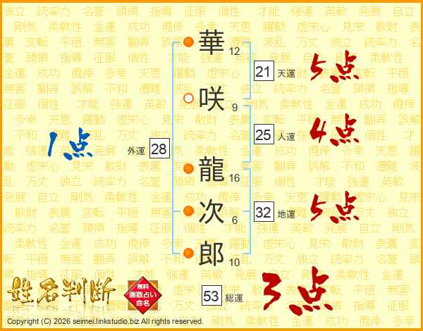 華咲龍次郎さんの総運は53画の3点!