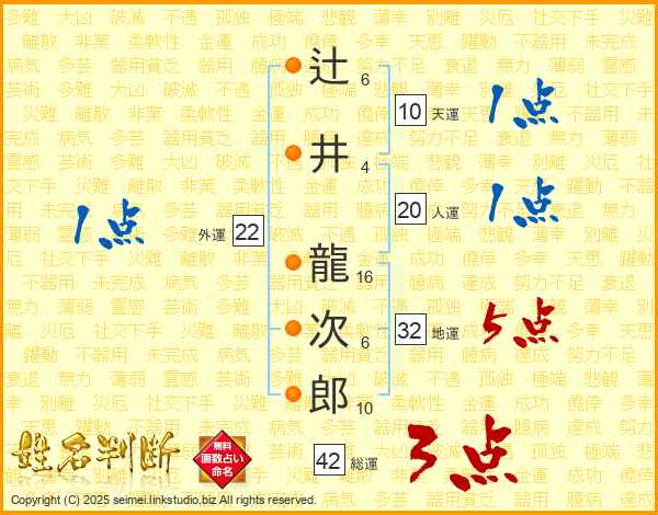 辻井龍次郎さんの地運は32画の5点!