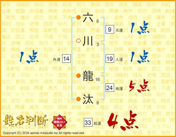 六川龍汰さんの総運は33画の4点!