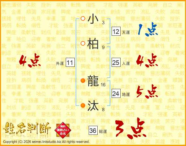 小柏龍汰さんの総運は36画の3点!