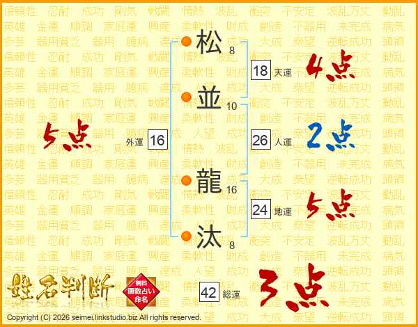 松(8画)並(10画) 龍(16画)汰(8画)