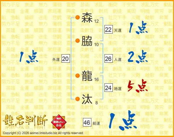 森脇龍汰さんの総運は46画の1点!