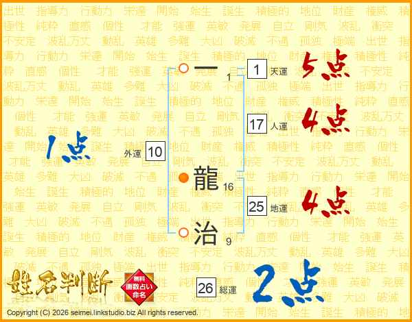 一龍治さんの総運は26画の2点!