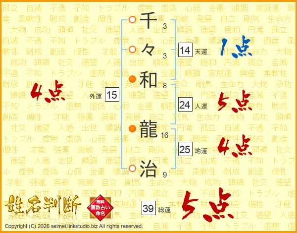 千々和龍治さんの総運は39画の5点!