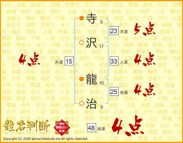 寺(6画)沢(17画) 龍(16画)治(9画)