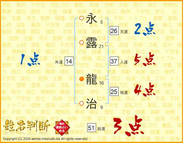 永露龍治さんの総運は51画の3点!
