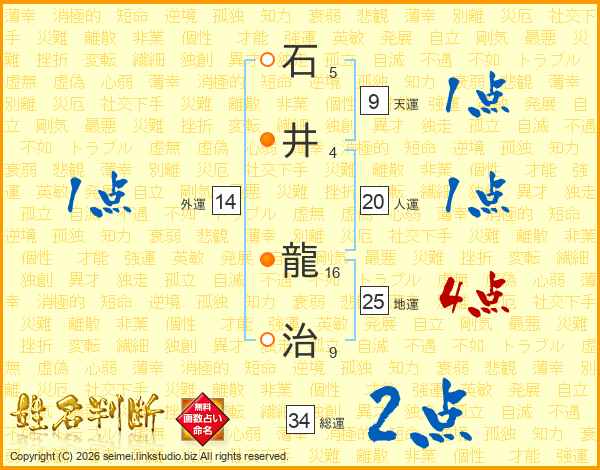 石井龍治さんの人運は20画の1点!