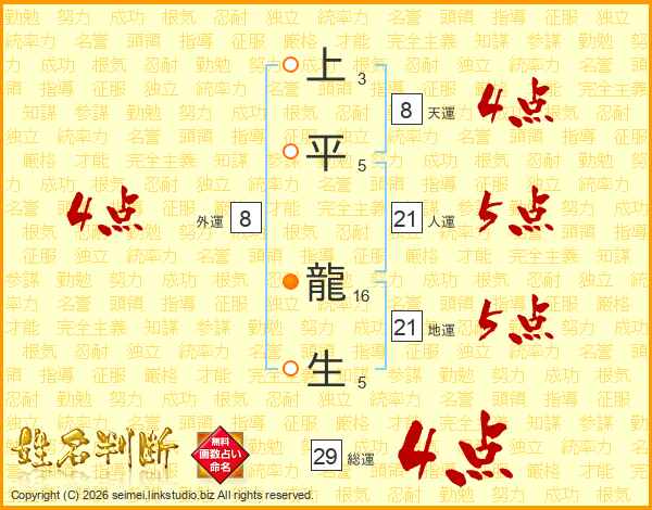 上平龍生さんの総運は29画の4点!