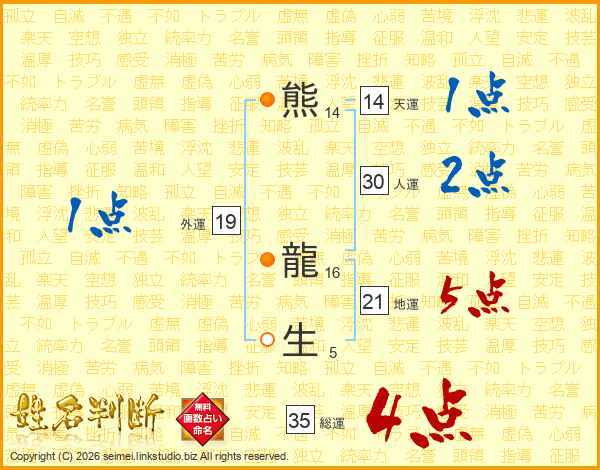 熊龍生さんの天運は14画の1点!