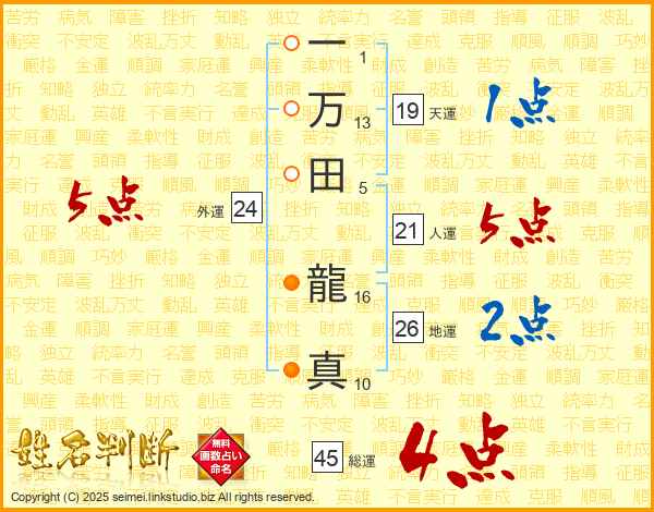 一(1画)万(13画)田(5画) 龍(16画)真(10画)