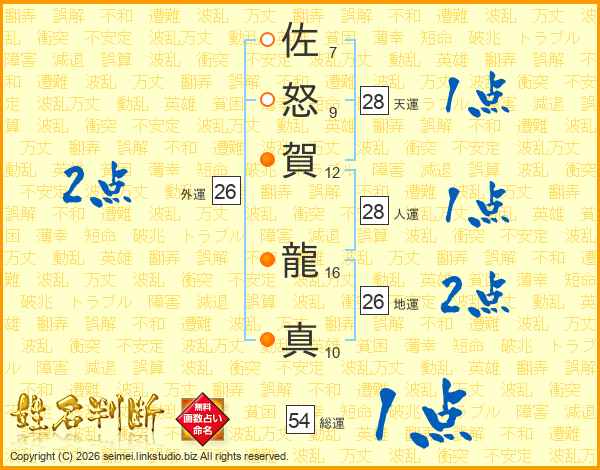 佐怒賀龍真さんの総運は54画の1点!