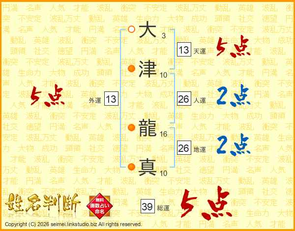 大津龍真さんの総運は39画の5点!