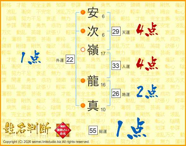 安次嶺龍真さんの総運は55画の1点!